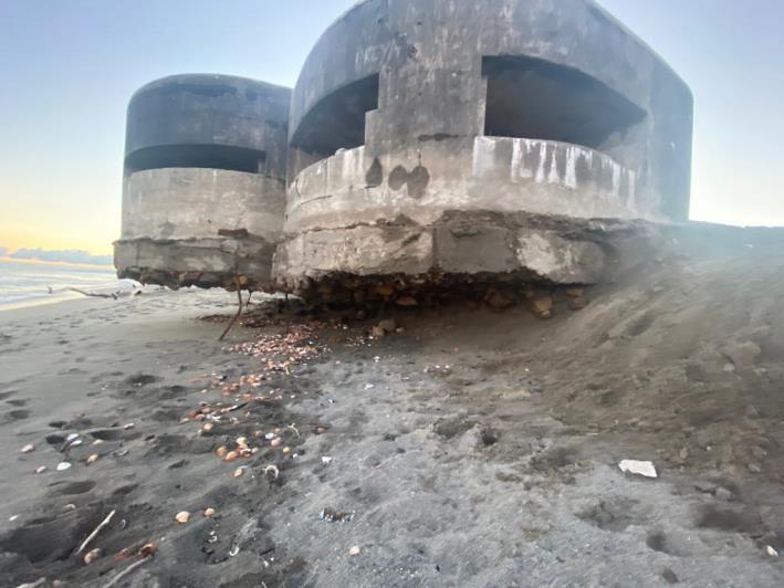 El efecto que han ocasionado los diques es devastador, se han perdido 50 metros de playa y el temporal se ha tragado el bunker.
